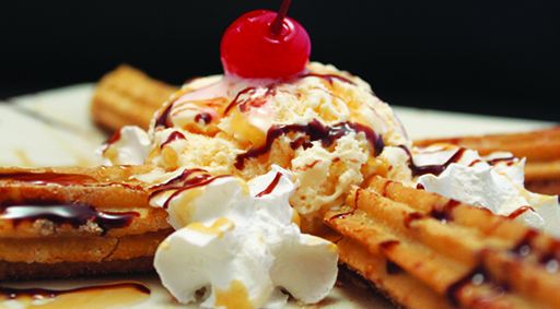 Grilled T-bone steak covered with Mexican sausage chorizo & cheese dip, served with rice, beans & flour tortillas