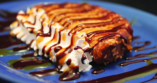 Four deep fried rolled corn tortillas stuffed with two chicken and two shredded beef. Served with guacamole salad